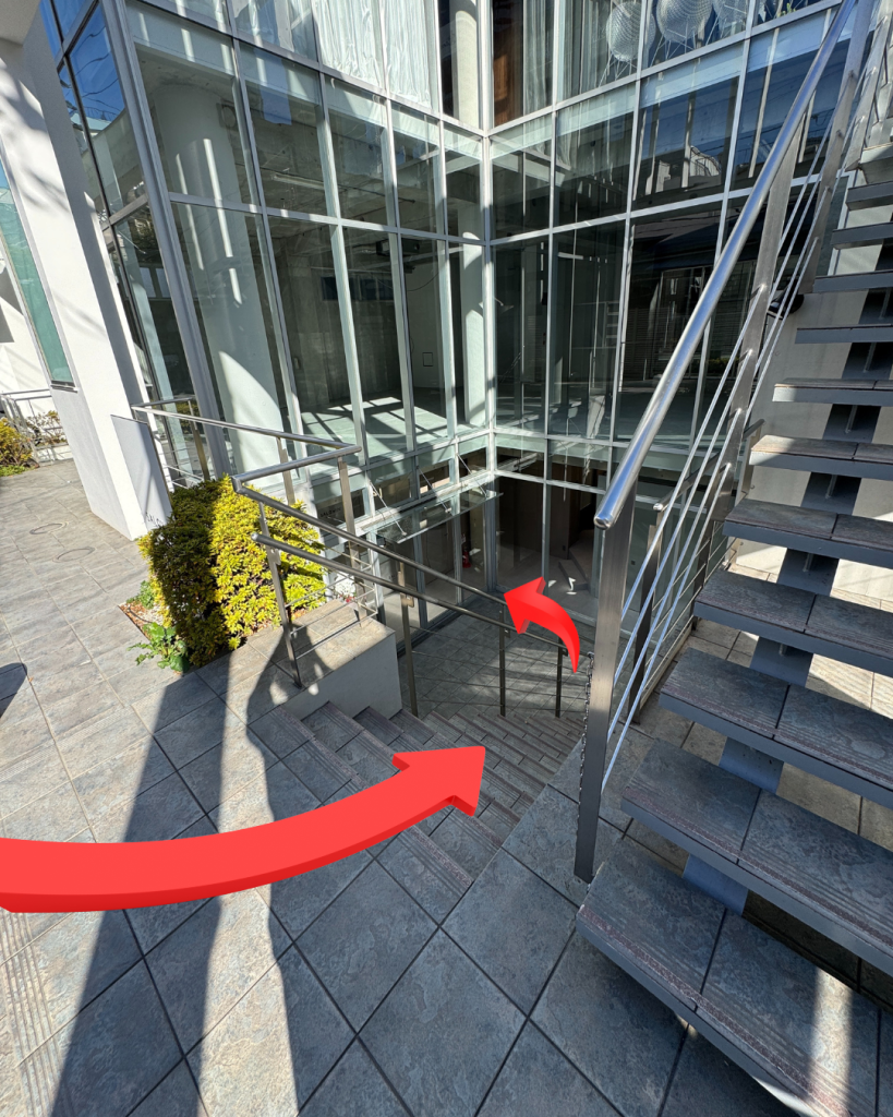 駐車場が見えたら、その横の白い建物の「地下一階」にサロンがあります。